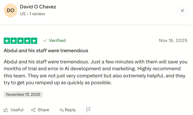 “This program truly stands out with clear, focused content and no fluff, just what you need to start building real AI products. Dhaval and Abdul break down complex ideas into simple, actionable steps, offering real-world insights that helped everything click. Thanks to their guidance, I’ve finally gained momentum and am building with confidence.”